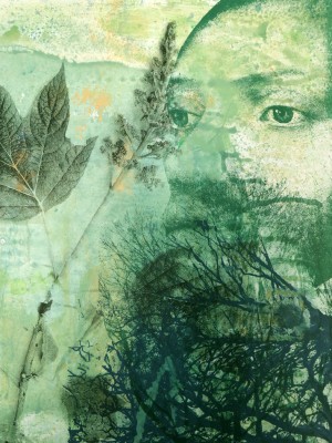 Een sfeervolle expositie van monumentale werken waarin onze relatie met het verstrijken van de tijd en de natuur belangrijk thema’s zijn. Ik laat er nieuwe grote werken zien, met bomen en weerspiegelingen en waarin ik landschappelijke elementen combineer met historische portretten. Portretten van meer en minder bekende individuen uit de 15e en 16e eeuw, maar ook details uit Maria-portretten uit die tijd.